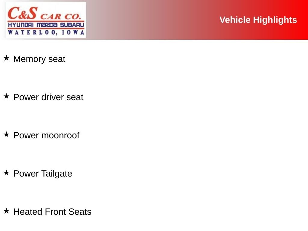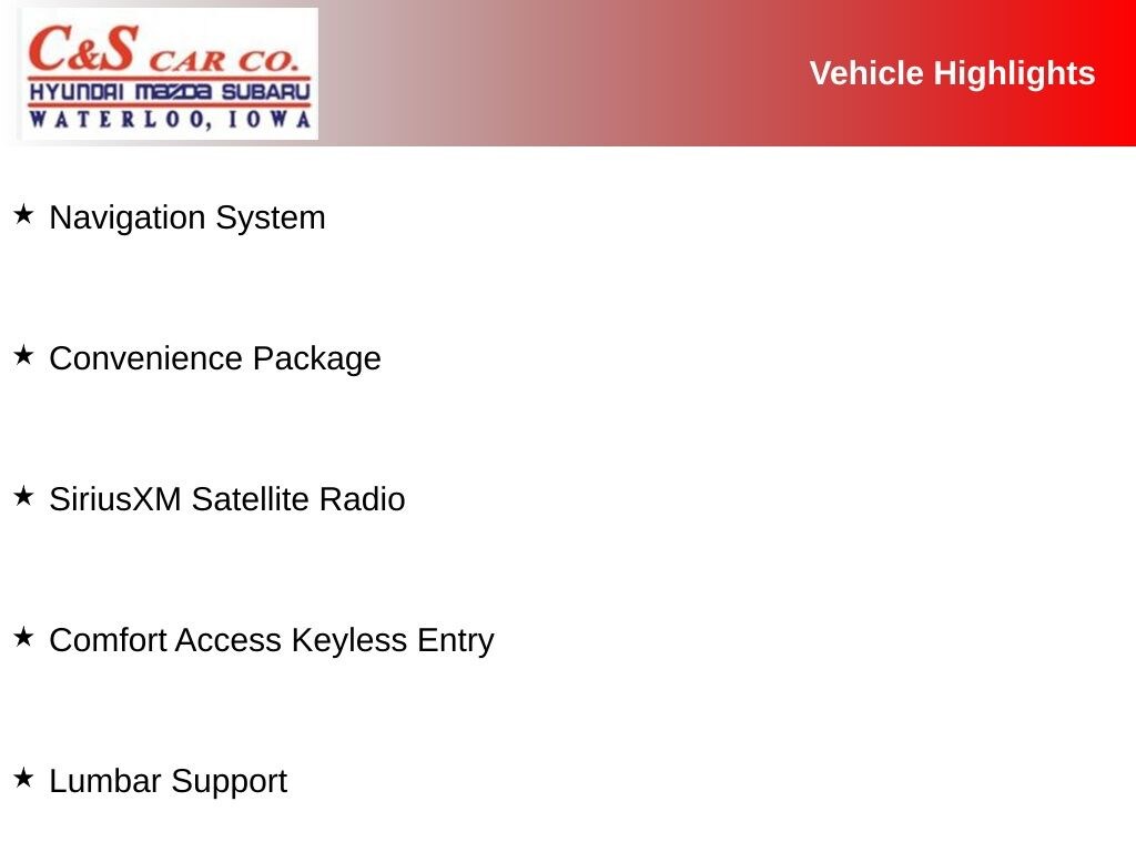 - Convenience Package, including Power Tailgate, Comfort Access Keyless Entry, and SiriusXM Satellite Radio