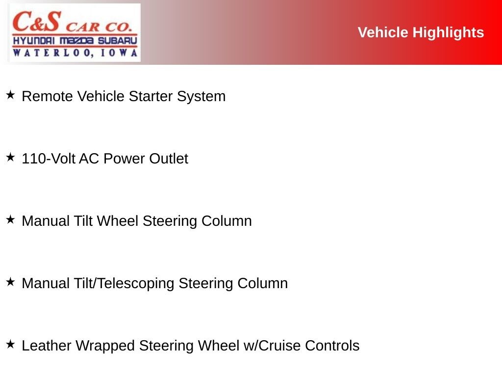 - Leather Wrapped Steering Wheel w/Cruise Controls