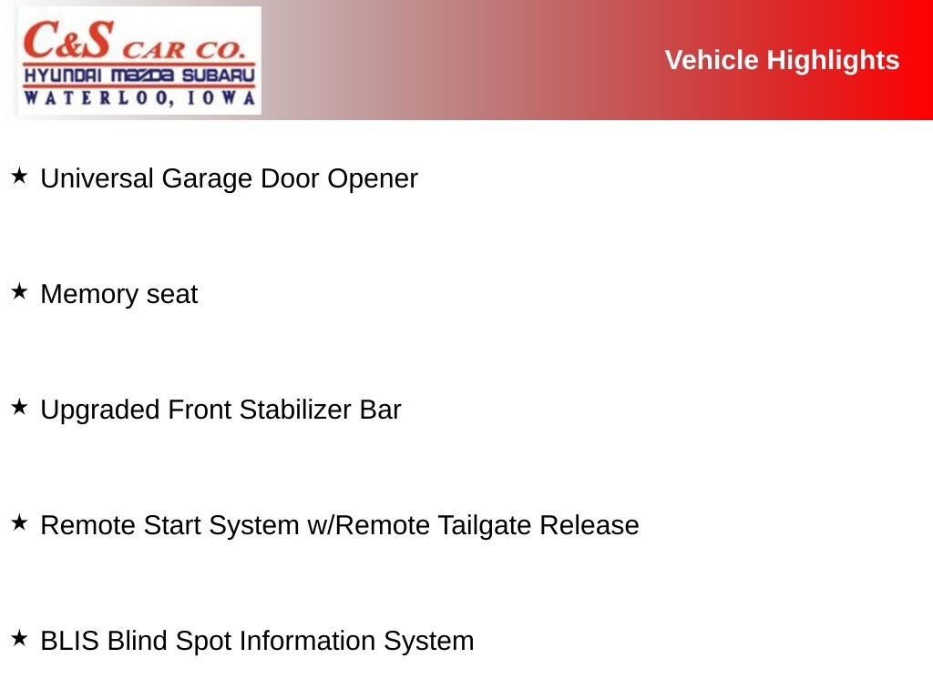- Blind Spot Information System (BLIS): Stay aware of your surroundings with the BLIS system, which alerts you to vehicles in your blind spots.