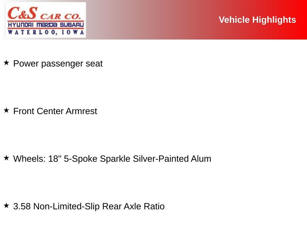 3.58 Non-Limited-Slip Rear Axle Ratio, Equipment Group 200A, Front Center Armrest, Power driver seat, Power Liftgate, Power passenger seat, Split folding rear seat, SYNC 3 Communications & Entertainment System, SYNC 3/Apple CarPlay/Android Auto, Tachometer, Telescoping steering wheel, Tilt steering wheel, Unique Cloth Captain's Chairs, Wheels: 18" 5-Spoke Sparkle Silver-Painted Alum.