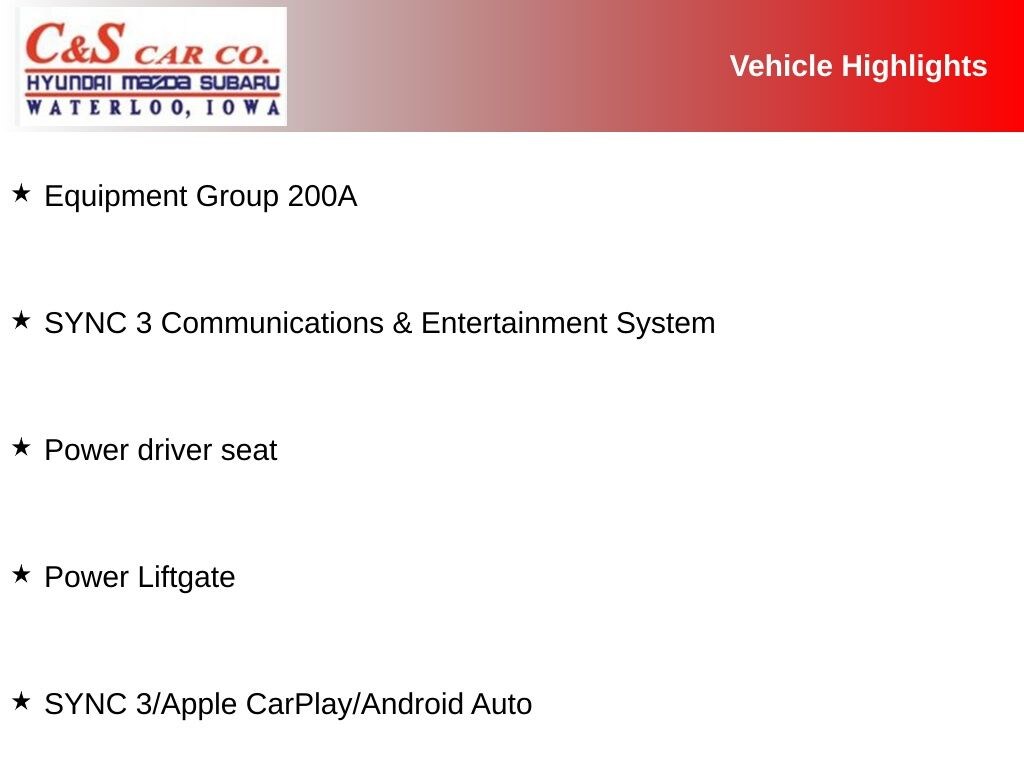 - Smart device integration: SYNC 3/Apple CarPlay/Android Auto