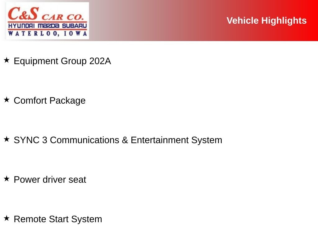 ⢠SYNC 3 Communications & Entertainment System with Apple CarPlay and Android Auto
