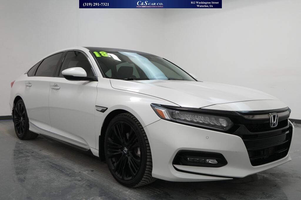 Platinum White Pearl 2018 Honda Accord 4D Sedan Touring 2.0T I4 DOHC 16V Turbocharged 22/32 City/Highway MPG 10-Speed Automatic FWD