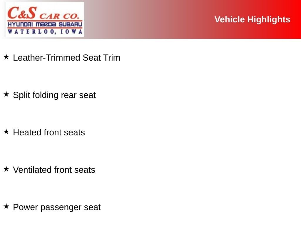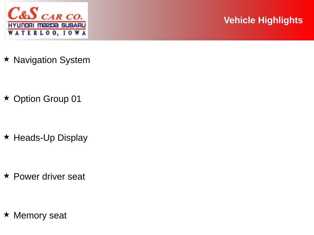 19" Alloy Wheels, Heads-Up Display, Heated & Ventilated Front Bucket Seats, Heated front seats, Heated rear seats, Heated steering wheel, Illuminated entry, Leather-Trimmed Seat Trim, Memory seat, Navigation System, Option Group 01, Power driver seat, Power Liftgate, Power moonroof, Power passenger seat, Split folding rear seat, Ventilated front seats.