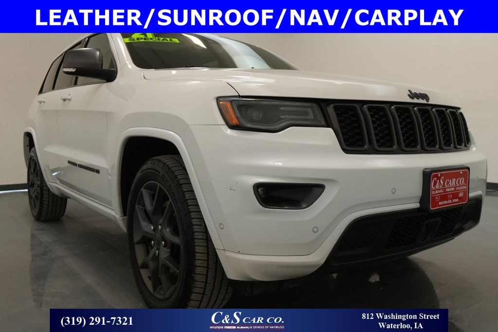 Bright White Clearcoat 2021 Jeep Grand Cherokee 4D Sport Utility 80th Anniversary Edition 3.6L V6 24V VVT 18/25 City/Highway MPG 8-Speed Automatic 4WD