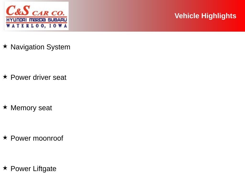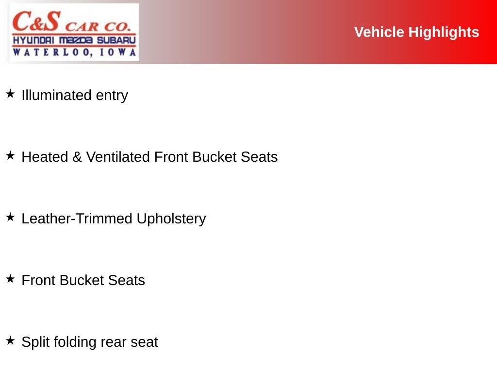 Alloy wheels, Apple CarPlay & Android Auto, Front Bucket Seats, Front Center Armrest, Heated & Ventilated Front Bucket Seats, Heated front seats, Heated Steering Wheel, Heated steering wheel, Illuminated entry, Leather Shift Knob, Leather steering wheel, Leather-Trimmed Upholstery, Memory seat, Navigation System, Power driver seat, Power Liftgate, Power moonroof, Power passenger seat, Reclining 3rd row seat, Split folding rear seat.