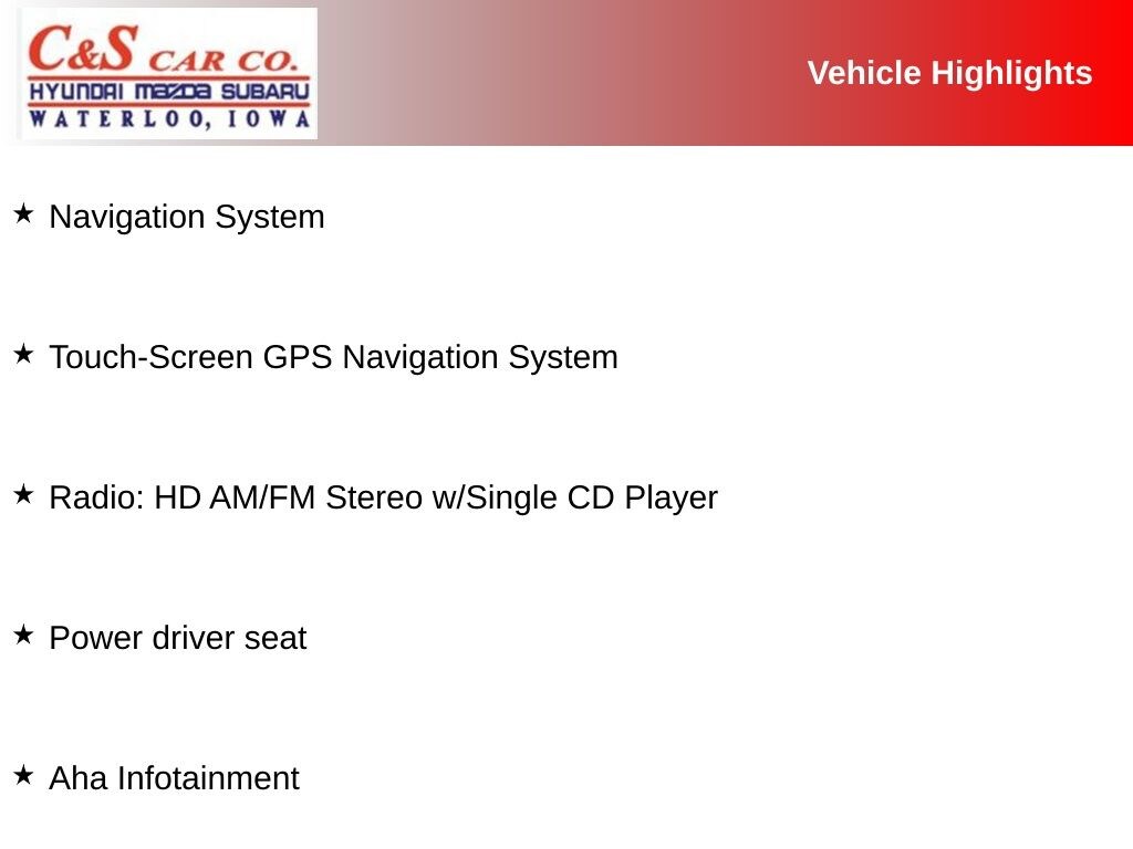 ⢠Radio: HD AM/FM Stereo w/Single CD Player