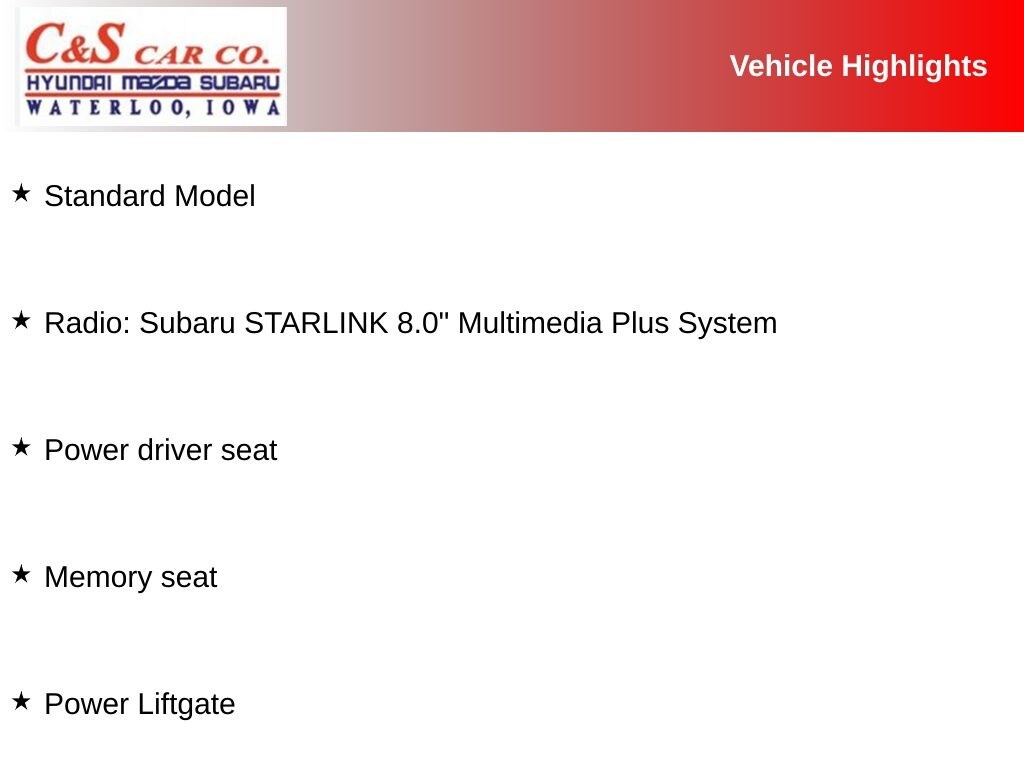 ⢠Radio: Subaru STARLINK 8.0" Multimedia Plus System
