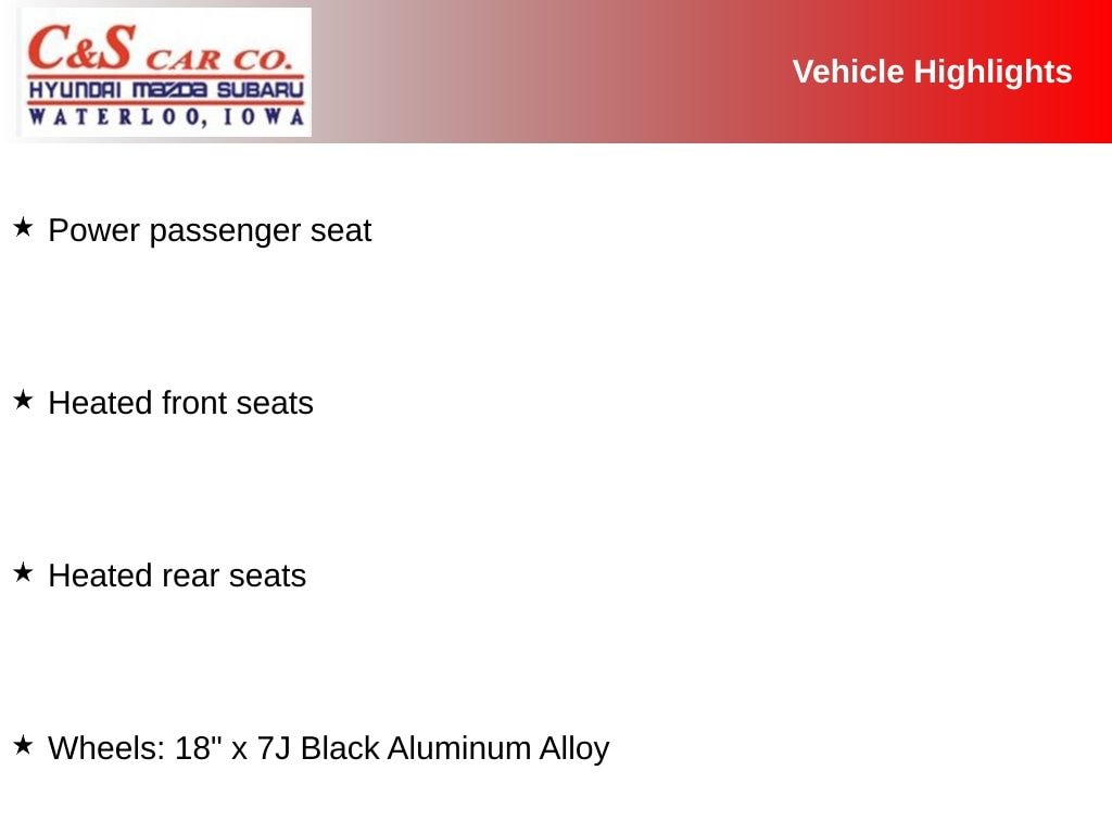 - Wheels: 18" x 7J Black Aluminum Alloy