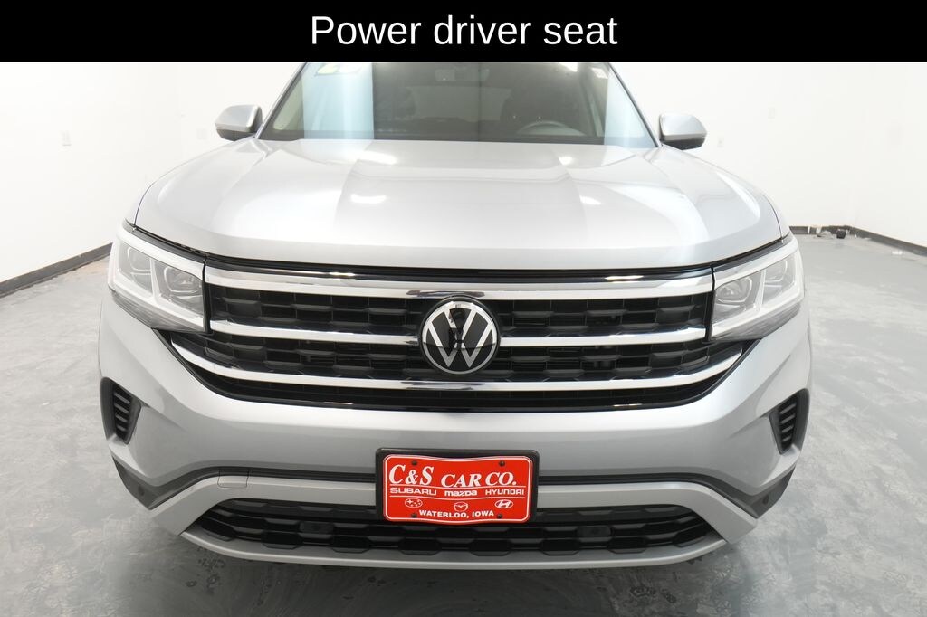 Highlighted by its - Power driver seat, Wheels: 20" x 8J 5-Spoke Silver Painted Alloy - this Atlas is designed to cater to your every need. Delve into its impressive list of amenities, including - 6 Speakers, AM/FM radio: SiriusXM with 360L, Radio data system, Radio: MIB3 Composition Media w/8" Touchscreen, Air Conditioning, Automatic temperature control, Front dual zone A/C, Rear air conditioning, Rear window defroster, Power steering, Power windows, Remote keyless entry, Steering wheel mounted audio controls, Four wheel independent suspension, Speed-sensing steering, Standard Suspension, Traction control, 4-Wheel Disc Brakes, ABS brakes, Dual front impact airbags, Dual front side impact airbags, Emergency communication system: VW Car-Net Safe & Secure 5-year, Front anti-roll bar, Low tire pressure warning, Occupant sensing airbag, Overhead airbag, Rear anti-roll bar, Power Liftgate, Brake assist, Electronic Stability Control, Exterior Parking Camera Rear, Delay-off headlights, Front fog lights, Fully automatic headlights, Panic alarm, Security system, Speed control, Bumpers: body-color, Heated door mirrors, Power door mirrors, Spoiler, Turn signal indicator mirrors, Auto-dimming Rear-View mirror, Compass, Driver door bin, Driver vanity mirror, Front reading lights, Heated Comfort Front Bucket Seats, Illuminated entry, Leather Shift Knob, Outside temperature display, Overhead console, Passenger vanity mirror, Rear reading lights, Rear seat center armrest, Tachometer, Telescoping steering wheel, Tilt steering wheel, Trip computer, 3rd row seats: split-bench, Front Bucket Seats, Front Center Armrest, Heated front seats, Perforated V-Tex Leatherette Seating Surfaces, Split folding rear seat, Passenger door bin, Alloy wheels, Rain sensing wipers, Rear window wiper, Variably intermittent wipers, 3.60 Axle Ratio.